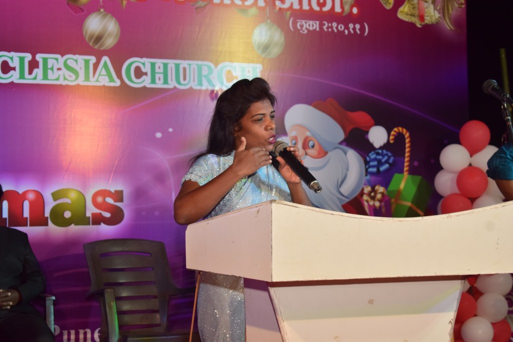 Sis. Sharmila sharing the testimony in Christmas celebration